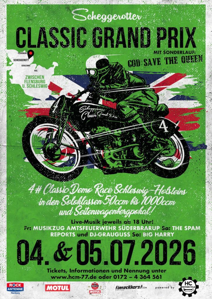 Der Scheggerotter Classic Grand Prix ist ein Demo Race für klassische Motorräder von 50ccm bis 1100 ccm und Seitenwagenbergpokal. Der Rundkurs hat eine Länge von ca. 1,7 km.